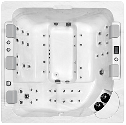 Стоит отметить, что расположение гидромассажных форсунок в данном СПА-бассейне уникально, поскольку они оказывают воздействие на всю спину от шеи и до поясницы, массируя самые проблемные зоны. Благодаря тому, что для каждого места в чаше форсунки установлены по-разному, у пользователей есть возможность делать акцент на массаж тех или иных зон. Сочетание водяных и воздушных форсунок в конструкции бассейна позволяет улучшить гидромассажный эффект, также создается роскошный эффект пузырьков.